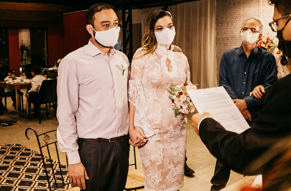 Je doet het ‘gewoon’ toch: je nodigt wellicht een wat kleiner gezelschap uit. De mensen die er écht toe doen. Je kiest een locatie die buiten is óf ontzettend goed te ventileren is. Je houdt een beetje gepaste afstand (tja, het moet maar). Je omhelst diegenen die tot je allerintiemste kring behoren (kinderen en dergelijke) en houdt afstand van de anderen. Je hebt een iets meer bescheiden feest. Waar je tóch je hart en ziel in legt en in vindt. Veel paren doen het tóch en hebben gewoon een schitterende dag!